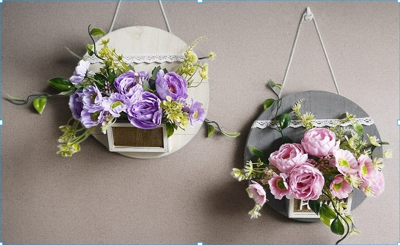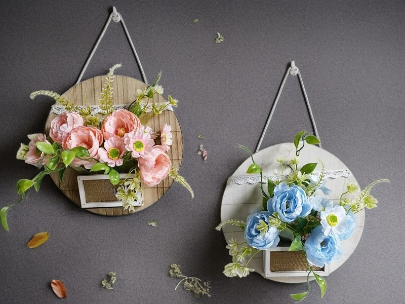 거실 벽걸이 꽃바구니 벽걸이 꽃바구니 원형 나무 상자
