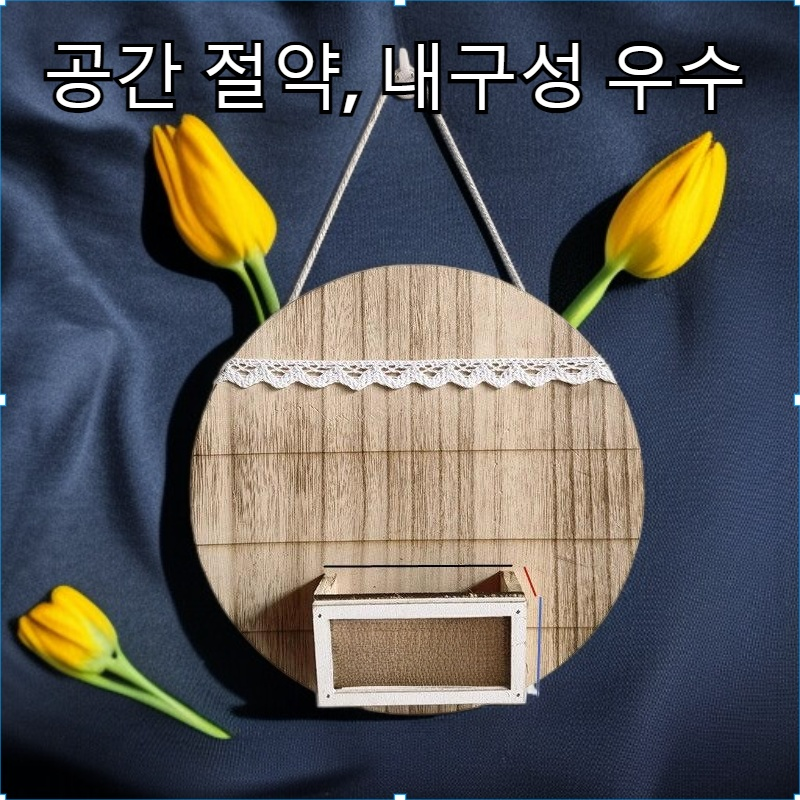 거실 벽걸이 꽃바구니, 원형 나무 상자 디자인, 공간 절약, 내구성 우수, 인테리어 포인트, 간편한 설치 제공