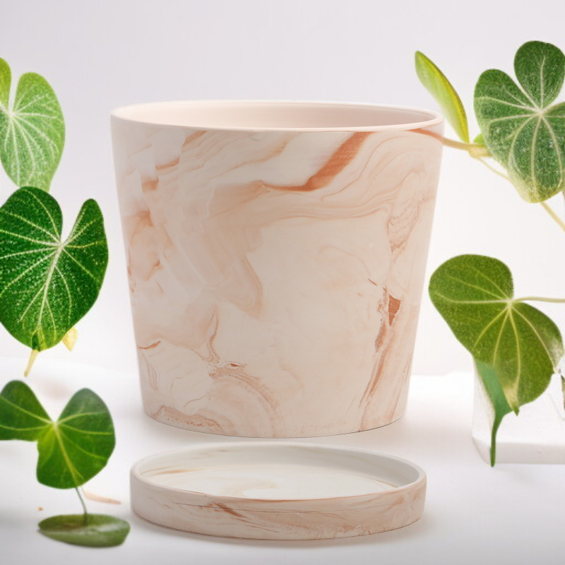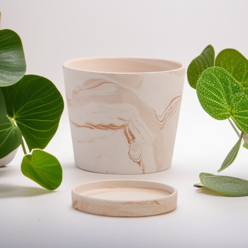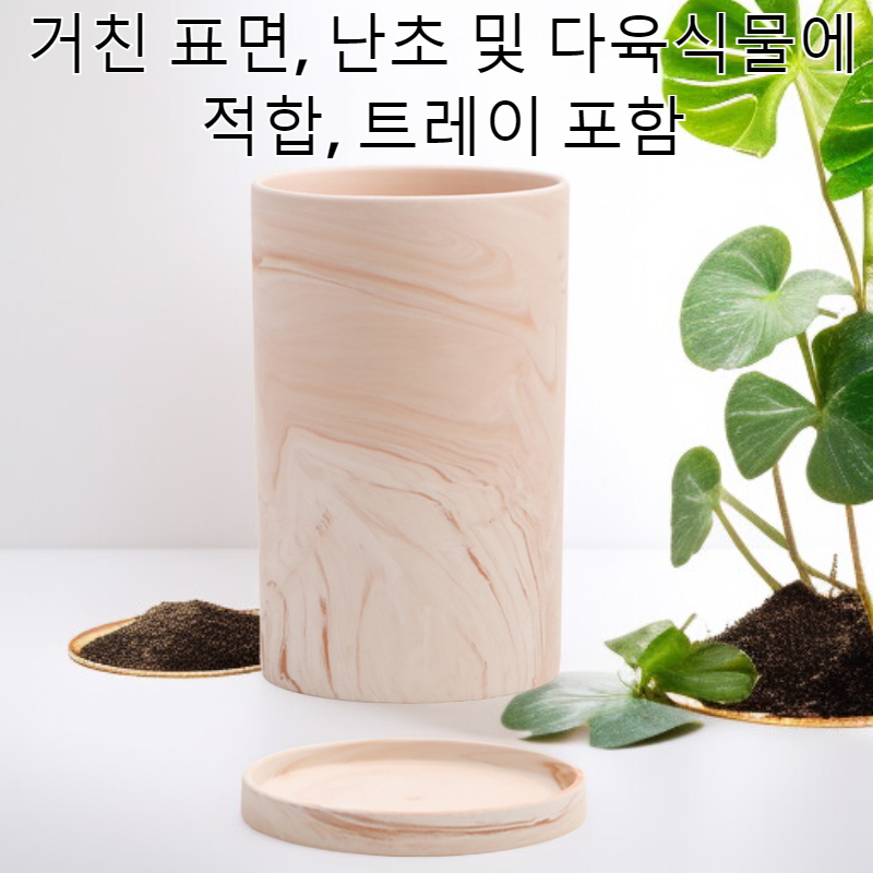 천연 마키아토 패턴의 붉은색과 흰색 도자기 화분, 무광 점토 소재로 통기성 우수, 거친 표면, 난초 및 다육식물에 적합, 트레이 포함